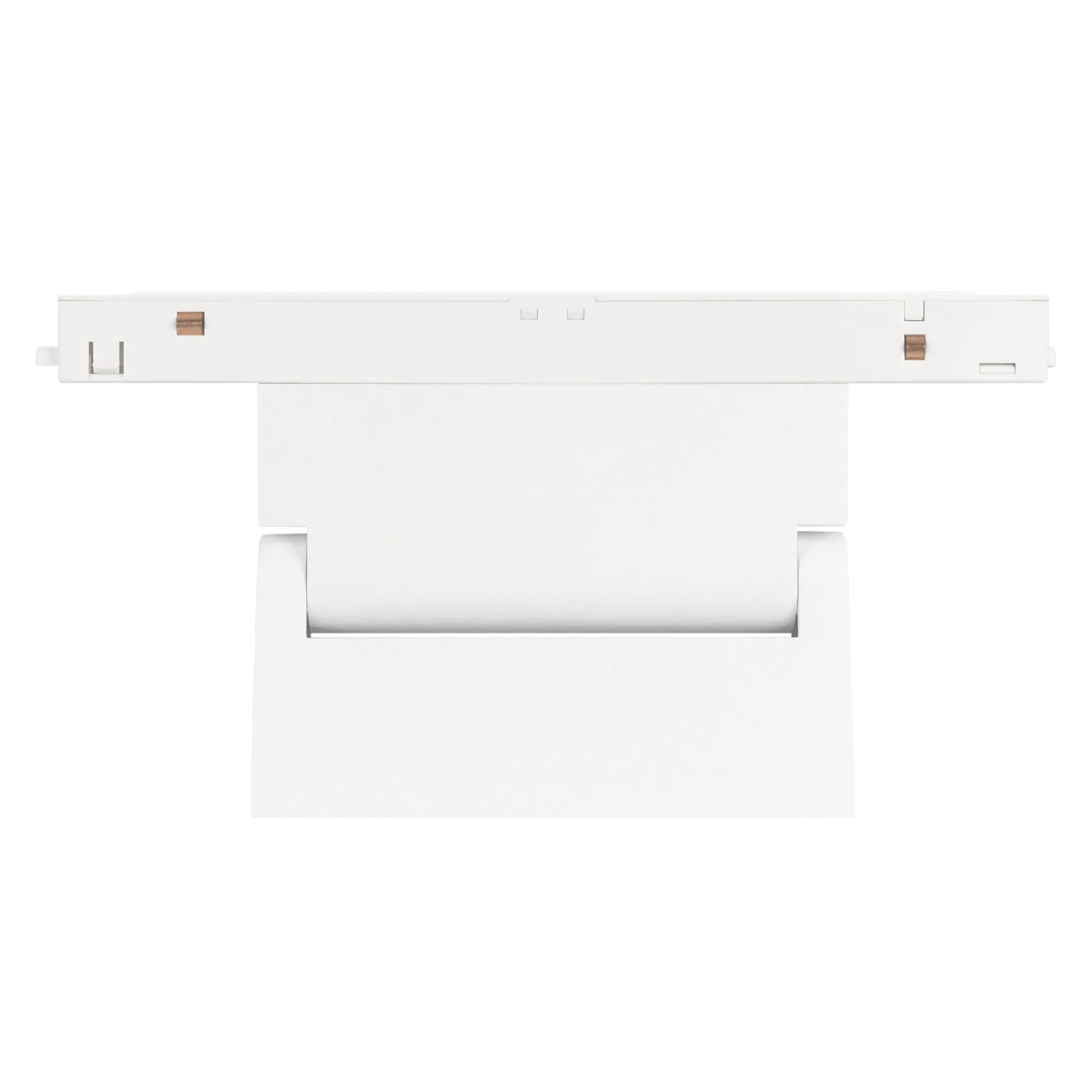 Светильник для магнитных треков MAG-ORIENT шириной 26 мм с управлением DALI. Мощность 6 Вт, св. поток 250 лм, 42 лм/Вт, теплый 3000 K, CRI>90, угол 30°, напряжение питания 48 В. Белый прямоугольный корпус из металл, экран поликарбонат, степень защиты IP20. Размер: длина 204 мм, ширина 23 мм, высота 104 мм. Монтаж на трек MAG-ORIENT. Пульсация <1%.
