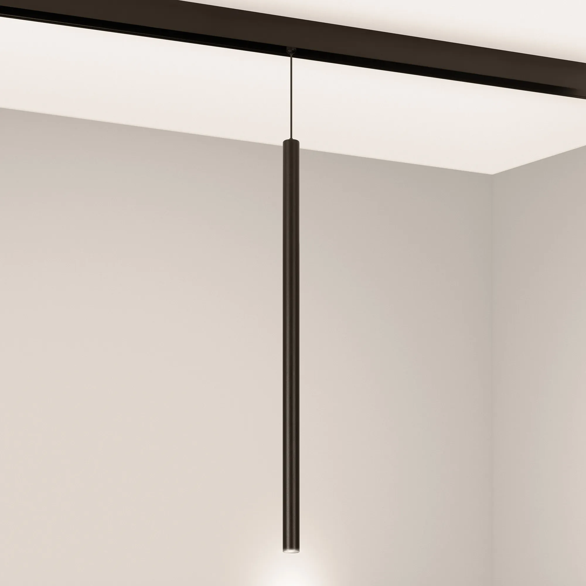 Светильник для магнитных треков MAG-Orient. Мощность 3 Вт, св. поток 150 лм, 50 лм/Вт, 3000 K, CRI>80, угол 20°, Черный цилиндрический корпус из металл, степень защиты IP20. Размер: длина 500 мм, диаметр 20 мм. Длина подвеса 1000мм. Подвес регулируемый.