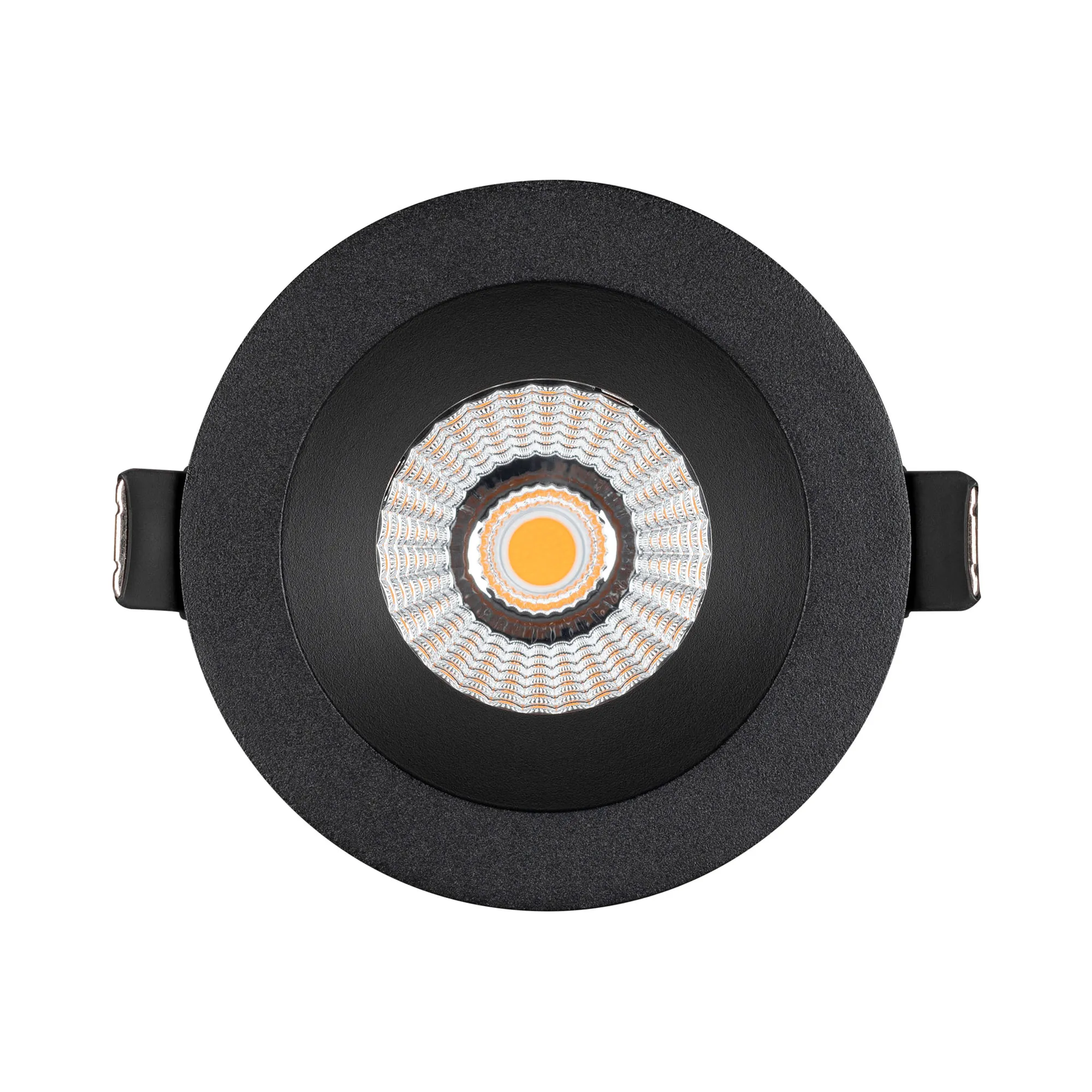 Встраиваемый светильник даунлайт. Мощность 10 Вт, св. поток 750 лм, 75 лм/Вт, тёплый 3000 K, CRI>90, угол 60°, напряжение питания 230 В. Чёрный круглый корпус из алюминия, экран PMMA, степень защиты IP54. Размер: диаметр 86 мм, высота 80 мм. Монтаж встраиваемый, установочное отверстие: диаметр 80 мм. Драйвер IP54, В, 20-40 В, 250 мА, пульсация <1%.