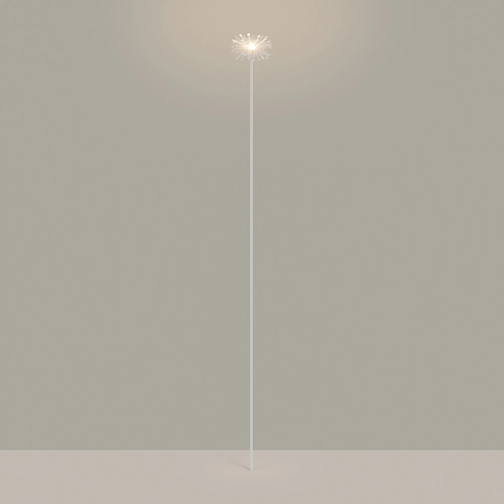 Уличный декоративный светодиодный светильник. Мощность 0.5 Вт, св. поток 13 лм, 92 лм/Вт, теплый 3000 K, CRI>80, угол излучения 24°, напряжение питания 24 В. Белый корпус из алюминия, прозрачный матовый рассеиватель из PMMA. Степень защиты IP65. Размер: диаметр 105 мм, высота 895 мм, высота углубления 155 мм. Монтаж в грунт с помощью основания пика (входит в комплект поставки). Драйвер приобретается отдельно.